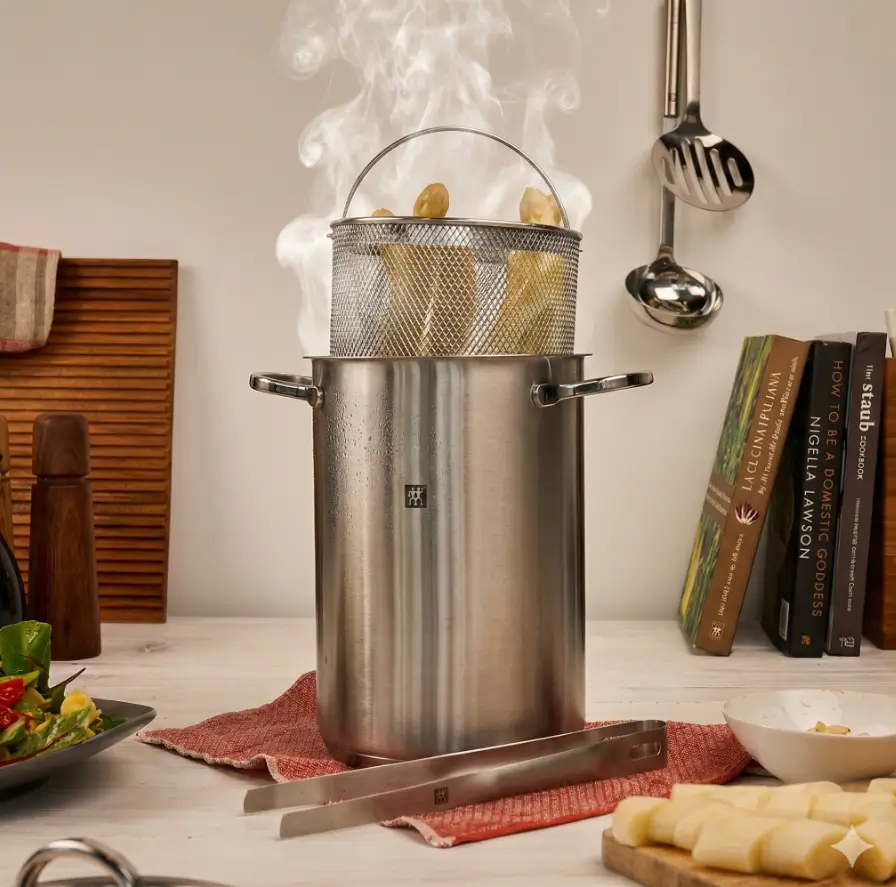Garanta sua Panela Zwilling Twin Specials com cesto interno + 3 espátulas de brinde + livro de receitas.